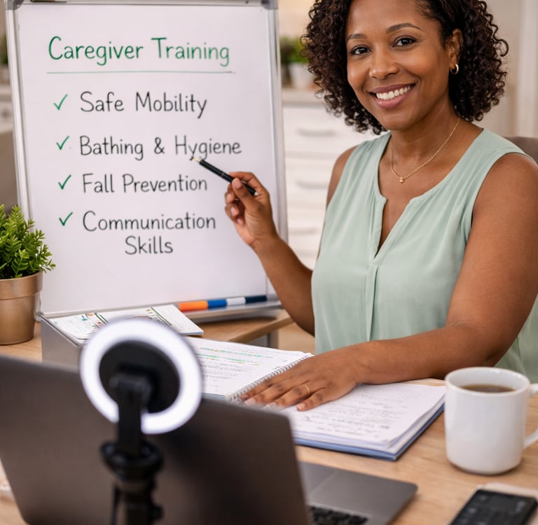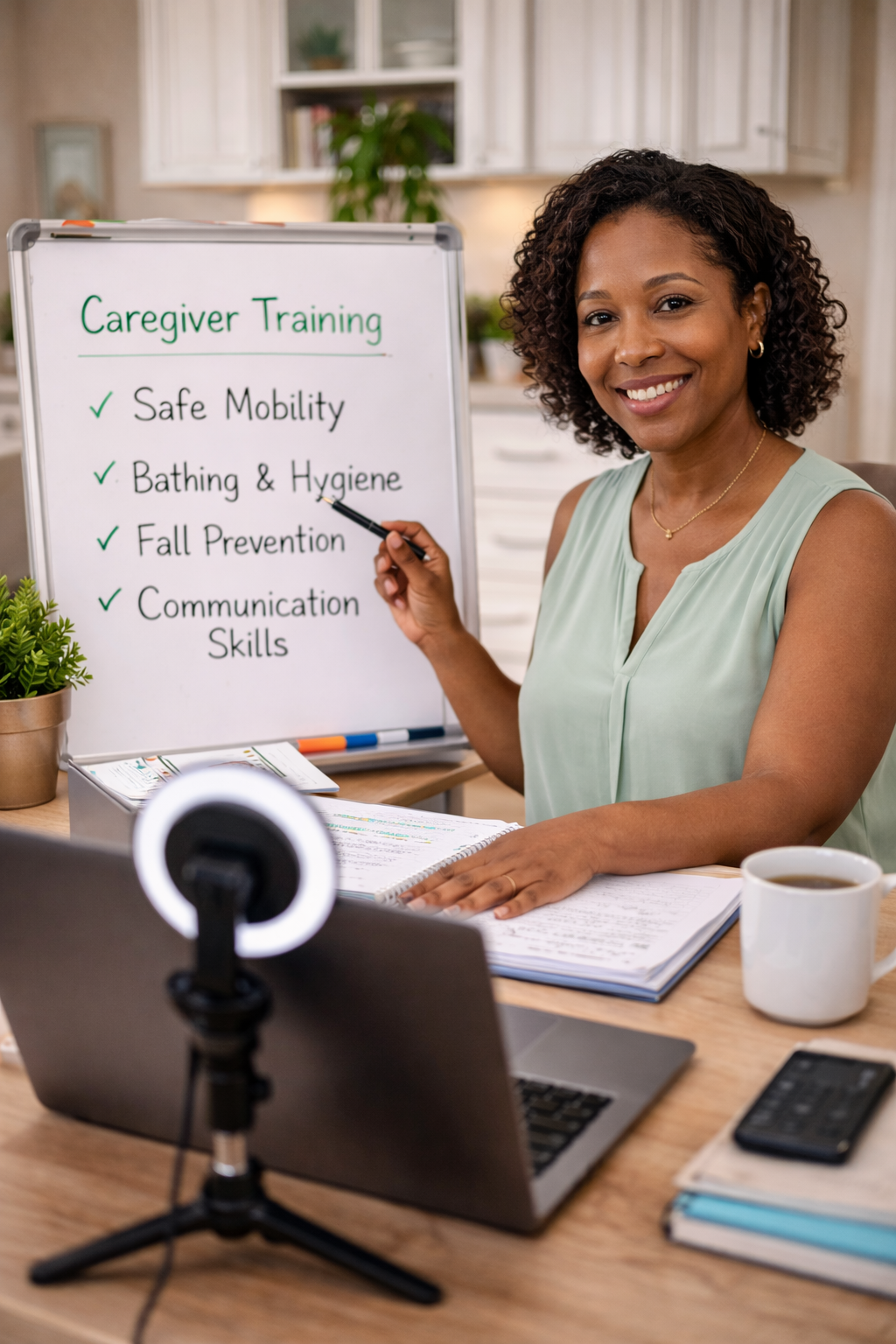 Our professional caregiver training program prepares individuals to deliver high-quality, dignity-centered care in home environments. Students develop essential caregiving skills, professional standards, and the confidence to serve seniors and vulnerable individuals.